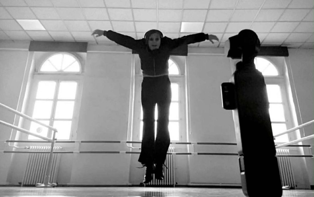 I am a Woman Conductor and I have different levels of work to manage, but I like it for the main reason: I feel absolutely free to express myself. When I do a film, it’s the same step and evolution than for a creation on stage: writing, choosing the characters, the general mood, the music, where it takes place, which sets, which lights, costume… I composed my story with two swinging doors, two portholes, a lightened corridor, my frame was set, « my stage » born, really minimalist. No extra lights except the effects I add on editing.The wood board placed on the floor allows a « live direct sound » without microphones. I place my headphones for a good and precise reception and balance of music with my tap dancing. Then comes the capture of the images: I do many shoots to get many rushes. I shoot on different axes, far, near, and then I choose. When I record I just put my IPhone on the floor and shoot and at this moment it’s absolutely the same feeling as if were dancing on a stage. I rehearse and then I GO !!!! I feel free like a tagger, I mix styles, I am an unclassifiable improviser choosing a multi disciplinary approach in merging of expressions without style or technical barriers. My planning is very precise, I create during several days so I can choose what is good or not later on. But I have also a dead line through the short limited period of studio occupation. In all my dance movies, I want to be very precise. When I’m editing on my computer, which is the second « big step » to create a visual framework, it takes me hours and hours to recreate the dance, by individual frames of 1/10 second. The music is also very important playing with the movement, the emotional intensity, the crescendo of speed, the legato of light etc… Everything is raw and natural. No IA !! BRUT!